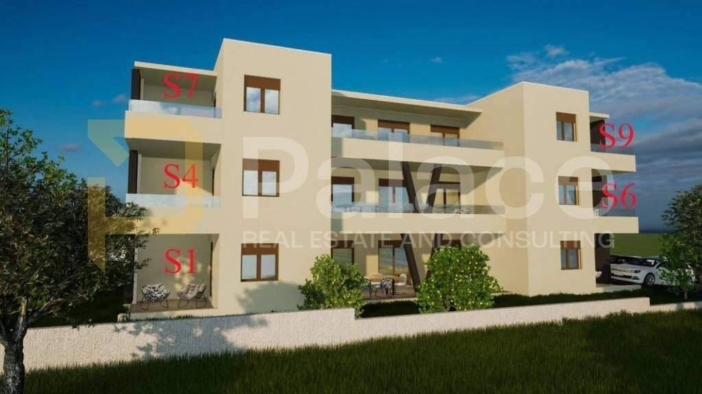 Zum Verkauf steht die Wohnungseinheit S7 im 2. Stock eines Gebäudes an einem attraktiven Standort in Vodice, mit einer Nettowohnfläche von 86,71 m2 und Blick auf Vodice und die umliegende Gewässer.