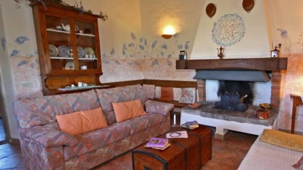 Das Haus besteht aus 3 Einheiten, jede mit unabhängigem Zugang: zwei im Erdgeschoss (mit direktem Zugang zur Veranda mit Essbereich) und eine im Obergeschoss. Der Haupteingang, im Erdgeschoss, öffnet sich zum Wohnbereich, der aus einem Einzelzimmer mit voll ausgestatteter Küche und Essbereich besteht. Von hier aus haben Sie Zugang zu einem kleinen Flur mit Doppelzimmer (und direktem Zugang zur Außenseite durch eine Fenstertür) und einem Badezimmer mit Dusche. Die zweite Einheit, die durch zwei Fenstertüren neben dem Haupteingang zugänglich ist, besteht aus einem großen Doppelzimmer mit Doppelschlafcouch und eigenem Bad mit Dusche. Das Zimmer hat direkten Zugang zu einer weiteren Veranda auf der Rückseite des Hauses. Eine Außentreppe führt in den ersten Stock, der die dritte Wohneinheit beherbergt: vom Wohnzimmer mit Kamin und Satellitenfernsehen (mit Doppelschlafcouch) gelangt man in einen kurzen Flur mit zwei Doppelzimmern mit 1,50 m breitem Bett und einem Bad mit zwei Duschen. Abgerundet wird die Etage durch einen großzügigen Küchen-/Wäschebereich. Im großen ruhigen Park, der die Villa umgibt, eingezäunt für ca. 3 Hektar, wechseln sich Olivenbäume mit gepflegten Rasenflächen und einer vielfältigen Vegetation ab. Die Obstbäume, wie z.B. Kirsch- und Feigenbäume, verlaufen vollständig auf einer Seite des Gartens, während um das Haus herum Blumenbeete aus Geranien und Rosensträuchern angeordnet sind. Die riesige Veranda vor der Küche, eingerahmt von duftenden Jasmin-Ranken, beherbergt den für das Essen im Freien vorbereiteten Bereich mit Grillplatz aus Ziegelsteinen in unmittelbarer Nähe. Auf der Rückseite befindet sich eine zweite ausgestattete Veranda als perfekte Entspannungsecke, um die wunderschöne Hügellandschaft zu genießen, die die Aussicht bietet. Schließlich, entlang der privaten Zufahrtsstraße, befindet sich der überdachte Parkplatz des Anwesens