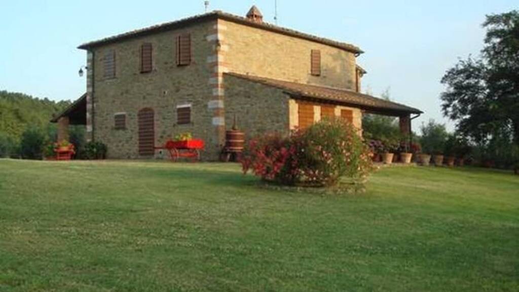 Dieses wunderschöne toskanische Bauernhaus liegt auf einem einsamen Hügel, in einer Gegend südlich des Chianti, zwischen Arezzo und Siena, beide in weniger als einer halben Stunde mit dem Auto erreichbar, in einer typischen Landschaft, bedeckt mit wilden Wäldern und Reihen von Olivenbäumen. Es handelt sich um ein altes Bauernhaus, das ursprünglich als Bauernhaus genutzt wurde, das noch die ursprüngliche Trennung der Räume widerspiegelt, die einst (im Obergeschoss) als Wohnhaus und (im Erdgeschoss) als landwirtschaftlicher Schuppen genutzt wurde, und dass sich die sorgfältige Renovierung in ein charmantes und privates Landhaus mit steinernen Außen- und rustikalen Innenräumen, mit sichtbaren Balken und Terrakotta-Böden verwandelt hat. Es ist umgeben von einem großen und gepflegten Garten mit einer reichen Auswahl an Pflanzen, Obstbäumen und Blumen.