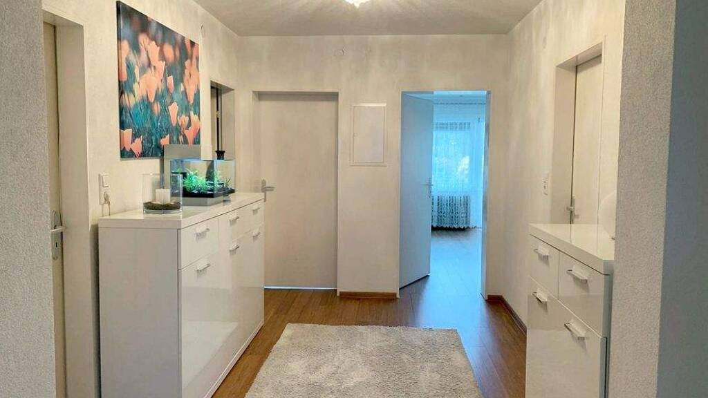 Beim Betreten der Wohnung erwartet Sie ein geräumiger Flur, der Zugang zu allen Zimmern bietet. Die helle und einladende Atmosphäre zieht sich durch die gesamte Wohnung. Der Boden in Holzoptik in Flur sowie den Wohnräumen vermittelt Wärme und Gemütlichkeit.