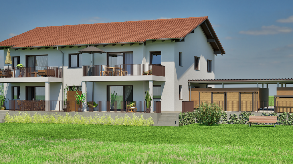 Das Mehrfamilienhaus wird in einem KfW 40 – QNG Standard gebaut und überzeugt mit einer gehobenen Ausstattung. Besonders hervorzuheben sind die großen Balkone sowie Terrassen. Im Erdgeschoss steht natürlich jeder Wohnung ein großzügiger Garten zur Verfügung. 2 Außenstellplätze, sowie ein