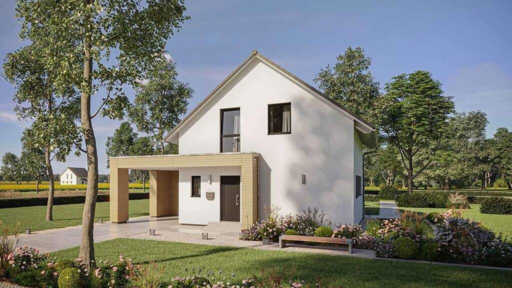 -inkl. ARCHITEKTENLEISTUNG (Genehmigungsplanung und Bauantrag) - inkl. BODENPLATTE - inkl. Baugrunduntersuchung - inkl. Dach - inkl. mineralischer Struktur-Außenputz (weiß) - inkl. 3-fach verglasten Wärmeschutzfenster (weiß) - inkl. Rollläden - inkl. modernem Haustürelement (Auswahl) - inkl. Elektro mit Montage - inkl. Materialpaket Dämmung und Beplankung - inkl. Holztreppe - inkl. Luft-Wasser-Wärmepumpe mit Fussbodenheizung EG/DG mit Montage - inkl. kontrollierter Be- und Entlüftung mit Montage - inkl. Sanitärrohinstallation mit Montage