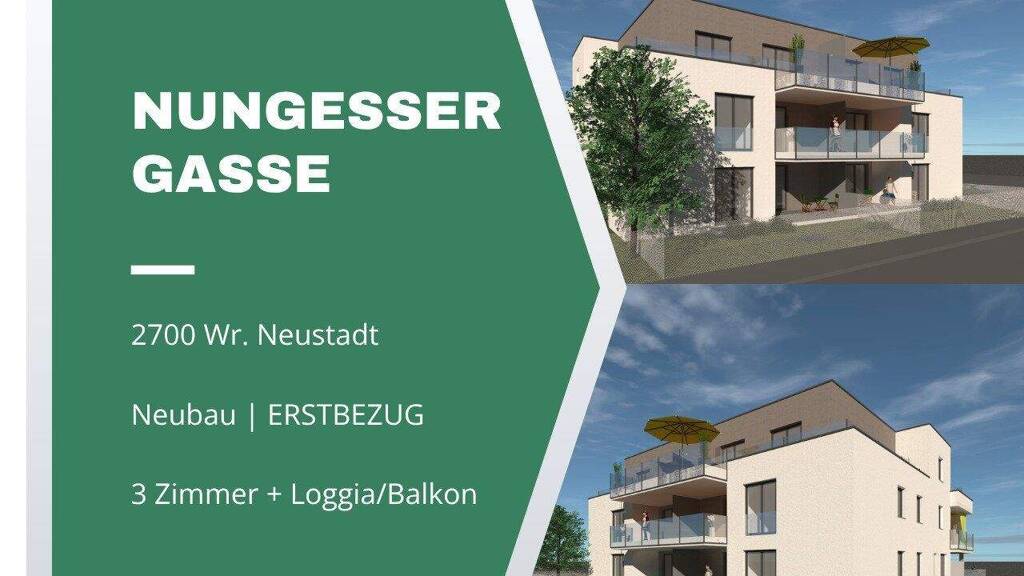 Zum Verkauf gelangt eine gut geschnittene 3 Zimmer Wohnung mit Loggia & Balkon im 1. Liftstock dieses modernen Neubau-Projekts in Wr. Neustadt - Nungessergasse / Illnergasse!
