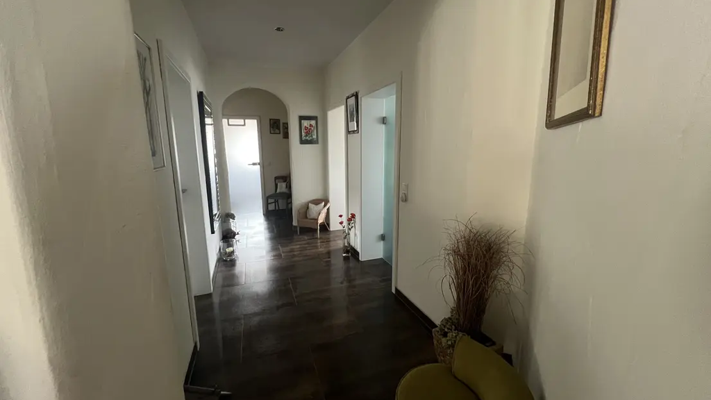 Über den einladenden Eingangsbereich gelangt man in eine repräsentative Diele, die als zentrale Verbindung aller Wohnbereiche dient. Sie bietet ausreichend Platz für eine stilvolle Garderobe und vermittelt bereits beim Betreten ein offenes und großzügiges Raumgefühl.