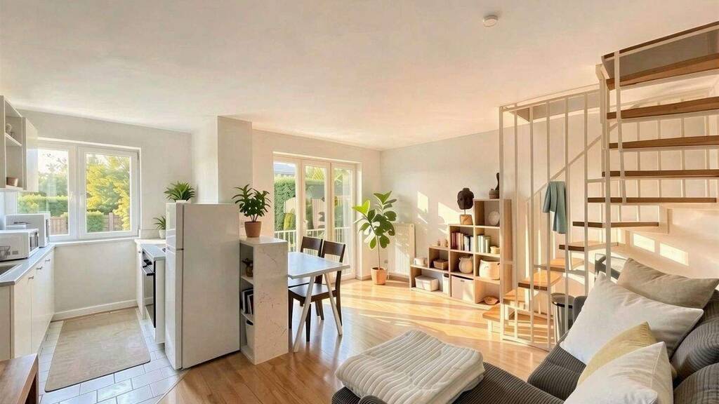 - Maisonettewohnung auf zwei Ebenen - ca. 39,81 m² Wohnfläche - Wohnzimmer mit offener Küche - Neue, moderne Einbauküche inkl. Elektrogeräte - Balkon in Westausrichtung mit Abendsonne und Blick ins Grüne - Galerie als Schlaf- oder Arbeitsbereich - Badezimmer mit Badewanne und WC - Zusätzliches Gäste-WC - Laminatboden in den Wohnräumen - Abstellraum mit Waschmaschinenanschluss - separates Kellerabteil - Gas-Zentralheizung - Duplex-Stellplatz (oberer Stellplatz) für zzgl. 15.000 € - Vermietet - attraktive Kapitalanlage