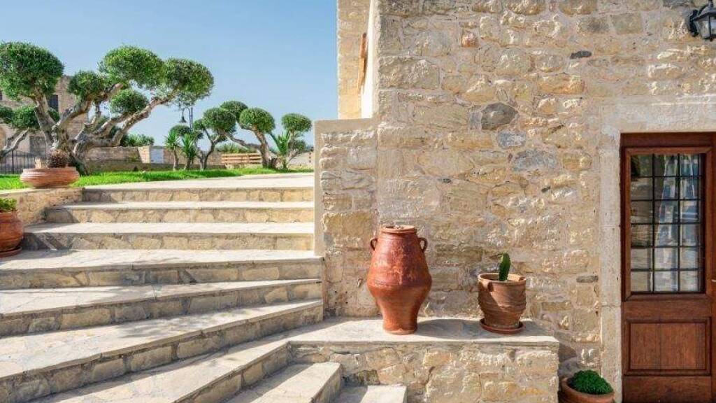 Eine 115 m² große Steinvilla steht zum Verkauf in einem traditionellen Dorf nahe Sitia. Die Immobilie befindet sich auf einem 500 m² großen Grundstück, nur 22 km von der Stadt Sitia und dem Flughafen sowie 12 km vom Meer entfernt. Darüber hinaus gibt es ein angrenzendes Grundstück von 600 m² mit vier Olivenbäumen, das derzeit als Parkfläche genutzt wird. Diese unvergessliche Residenz wurde 2008 erbaut und 2023 renoviert und bewahrt den traditionellen architektonischen Charme mit Steinbögen, freiliegenden Steinwänden und Holzdecken, was eine warme und authentische Atmosphäre schafft. Beim Betreten der Villa gibt es eine offene Küche und ein Esszimmer. Entgegen dem Haupteingang führt ein Steinbogen zu einem Schlafzimmer mit Bad ensuite. Links vom Eingang öffnet sich der Raum zu einem Wohnzimmer mit Kamin, einem Schlafzimmer und einem Badezimmer. Die umliegende Gegend ist schön mit verschiedenen Bäumen platziert und bietet einen Blick auf die Landschaft und die Berge. Diese Immobilie vereint natürliche Schönheit und Ruhe und macht sie zur idealen Wahl für einen dauerhaften Wohnsitz oder ein Ferienhaus. Entfernung zum Dorf (km): 1 Stadt (km): 22 Strand (km): 12 Flughafen (km): 22
