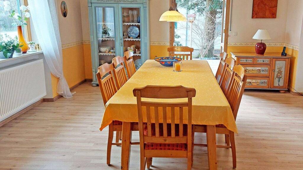 In ruhiger Ortsrandlage von Übersee gelegen findet sich dieses in 1997 erbaute, sehr gepflegte Haus. Aufgrund der Aufteilung eignet sich das Haus für eine Familie als auch für einen Ferienwohnsitz oder auch für ein Paar, das auch von zuhause aus arbeitet und im Untergeschoss ein Büro unterbringt. Das Erdgeschoss ist hell und offen gestaltet, die neuwertige Asmo Küche mit Bora Abzug, Miele- und Boschgeräten ist Bestandteil des Angebotes. Neben dem Essplatz in der Küche gibt es einen zusätzlichen Holzofen. Die Rückseite im Esszimmer verströmt mit einem Kachelofen wohlige Wärme im gesamten Wohn- bzw. Esszimmer. Nach Süden hin öffnet sich eine Doppeltüre zum Garten, Terrassen rund ums Haus ermöglichen Ihnen, ein Sonnenplätzchen zu jeder Tageszeit zu finden. Eine kleine Speis vom Flur ab bzw. Garderobe und Gäste WC komplettieren das Erdgeschoß. Im Obergeschoss bieten drei großzügig geschnittene Schlafzimmer, zwei davon mit Zugang zum Südbalkon sowie ein großes Bad mit Dusche und Badewanne ausreichend Platz. Das Kellergeschoss teilt sich neben Heizungsraum, Tank- und Waschraum zwei weitere Kellerräume, von denen einer aufgrund des Lichteinfalls auch gut anderweitig genutzt werden kann. Neben einer Garage erlauben ein ca. 7 m² großer Abstellraum, eine Holzlege und ein Gartenhaus üppige Abstellmöglichkeiten, ein Carport bietet Platz für den Zweitwagen. Der Garten ist mit alten Obstbäumen hübsch eingewachsen, ein Hochbeet wartet auf Ihren Gemüseanbau! Die Nähe zum See und die ruhige Lage werden Sie Ihr neues Zuhause genießen lassen !