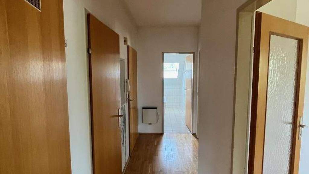 Das Badezimmer ist mit einem Fenster, einer Wanne und einem Waschmaschinenanschluss ausgestattet, was den Alltag angenehm gestaltet. Der Flur mit Garderobenbereich bietet ausreichend Stauraum für Jacken und Schuhe. Ein separates WC sorgt für zusätzlichen Komfort.