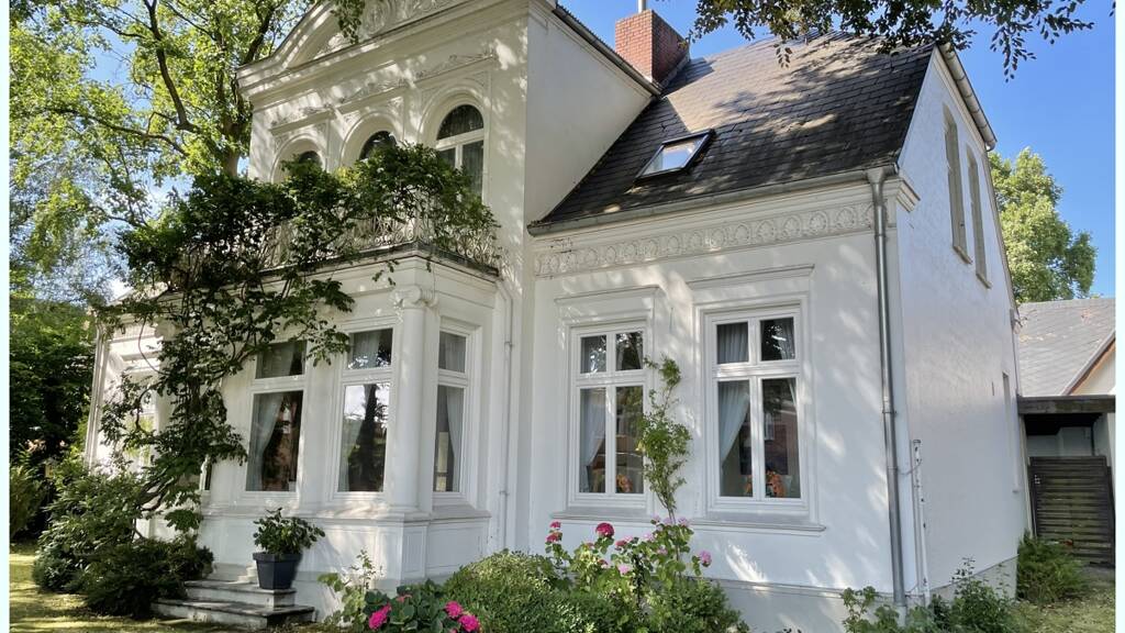 Eines der markantesten Baudenkmäler der Stadt ist diese wunderschöne spätklassizistische Villa ! In 2024 wurde das Haus nach einem Schadenfall umfangreich saniert mit allen Installationen, Haustechnik und Fussbodenheizung im ganzen Erdgeschoss - daher befindet sich das Haus in absolutem Topzustand. Im rückwärtigen Bereich bietet das 1982 massiv errichtete Nebengebäude eine Gästewohnung sowie Doppelgarage und Abstellräumlichkeiten. Eine großzügige überdachte Terrasse mit Blick in den herrlichen Garten sowie der überdachte Pool mit vollautomatischer Regelungstechnik lassen kaum Wünsche offen. Der parkähnlich angelegte Garten ist schön eingewachsen. Beeindruckend ist der alte Baumbestand mit Tulpenbäumen und Norddeutschlands größtem Ginkgobaum.