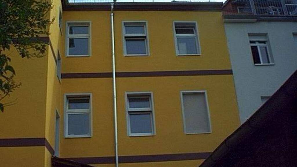 Tapeten weiß gestrichen, Auslegware, Verbundglasfenster, Ölzentralheizung, Bad gefliest, Einbauküche, Spiegel gefliest. Fußboden Laminat bzw. abgezogene Dielen im Flur.