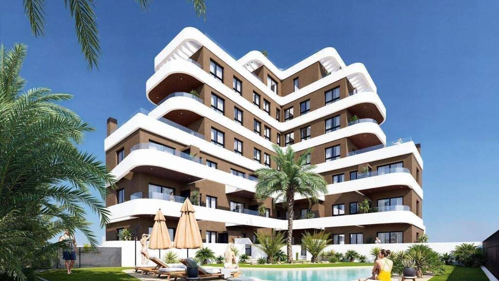 Entdecken Sie diese exklusive neue Wohnanlage in Guardamar del Segura, Alicante, mit nur 19 modernen Apartments, die zeitgemäßen Komfort und mediterranen Lifestyle vereinen. Die Anlage liegt nur 1,4 km vom Strand und wenige Gehminuten vom Stadtzentrum entfernt – ideal für ein stilvolles Ganzjahreswohnen oder als luxuriöser Ferienort.