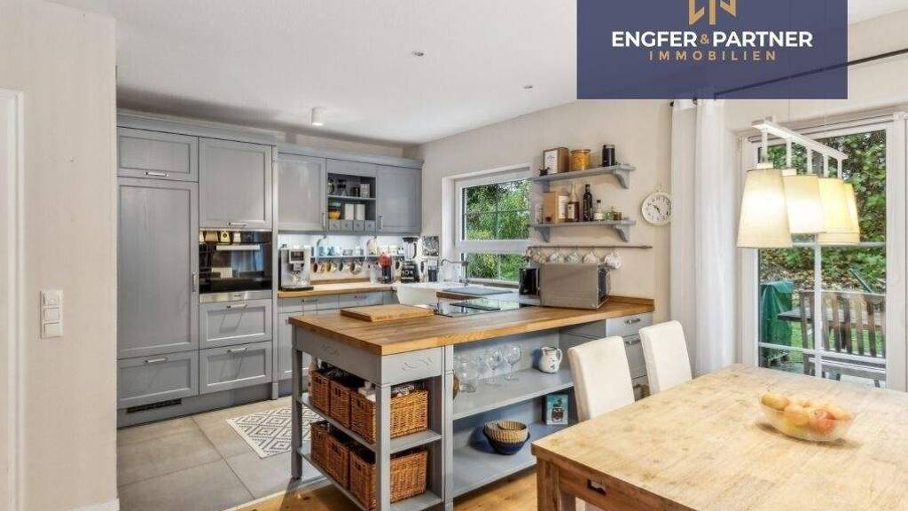 Holzhaus Bungalow, Effizienzhaus 40 (A+), Baujahr 2020 Barrierearme Bauweise, stufenlos auf einer Ebene Ca. 108 m² Wohnfläche, 3 Zimmer: Offener Wohn-/Essbereich mit Kaminofen, Schlafzimmer mit Ankleidebereich, Gäste- oder Arbeitszimmer, Vollbad mit begehbarer Dusche, Badewanne & Doppelwaschtisch, Hauswirtschaftsraum mit Technik und Stauraum, offene Einbauküche mit Miele-Geräten und Kücheninsel Fußbodenheizung, Wärmepumpe, Kunststofffenster mit Dreifachverglasung Zwei Terrassen, Garten mit Brunnenwasser und Mähroboter Zwei Pkw-Stellplätze, Abstellmöglichkeit im Dachboden SAT-Schüssel