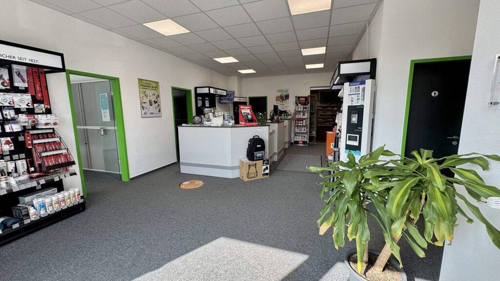 - Moderne Büroflächen (ca. 142 m²) - Rollläden - schneller Internetzugang mit 100 Mbit Leistung - großer Besprechungsraum - beheizbare Hallenfläche (ca. 348 m²) - Hallentor mit einer Höhe von ca. 4,10 m und einer Breite von ca. 4,00 m - neuwertige WCs und Sozialflächen - 3 PKW-Stellplätze