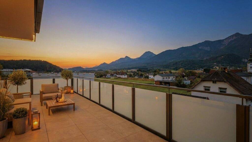 Die Lage ist ein Geschenk: Umgeben von Wiesen und Feldern genießen Sie den weiten Blick auf die Karawanken und den imposanten Mittagskogel, während der türkisblau funkelnde Faaker See in unmittelbarer Nähe liegt. Hier verbinden sich Natur, Gelassenheit und moderner Komfort zu einem Wohngefühl, das nachhaltig wirkt.