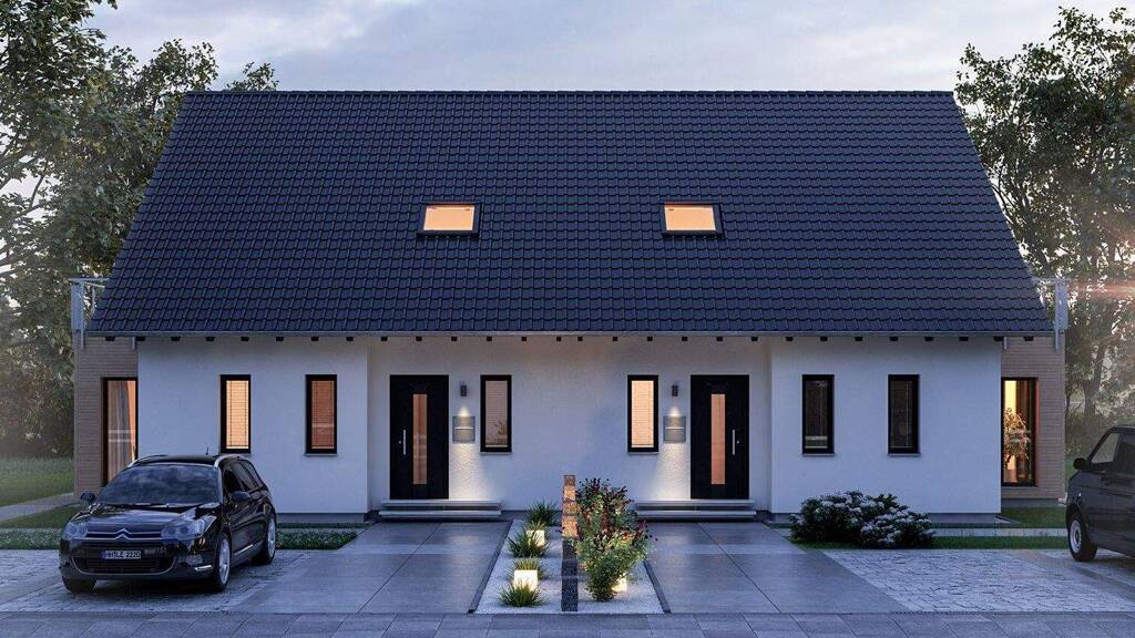 Dieses schöne und geräumige Doppelhaushälfte besticht mit seiner praktischen Größe, ideal auch für kleinere Grundstücke. Eine schöne offene Küche (auf Wunsch auch geschlossen) mit gemütlichen Wohnzimmer mit Platz für Kamin.