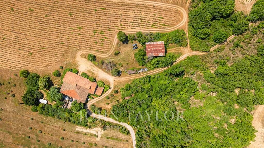 Die landwirtschaftlichen Flächen erstrecken sich über mehr als 23 Hektar, die sich auf Lavendel, Getreide, Wiesen, Olivenhaine, Trüffelbäume, Wälder und Fruchtwechselkulturen verteilen. Das Ganze ist durch Privatwege erschlossen und liegt in einer geschützten natürlichen Umgebung, die von Tälern und Flüssen gesäumt wird.