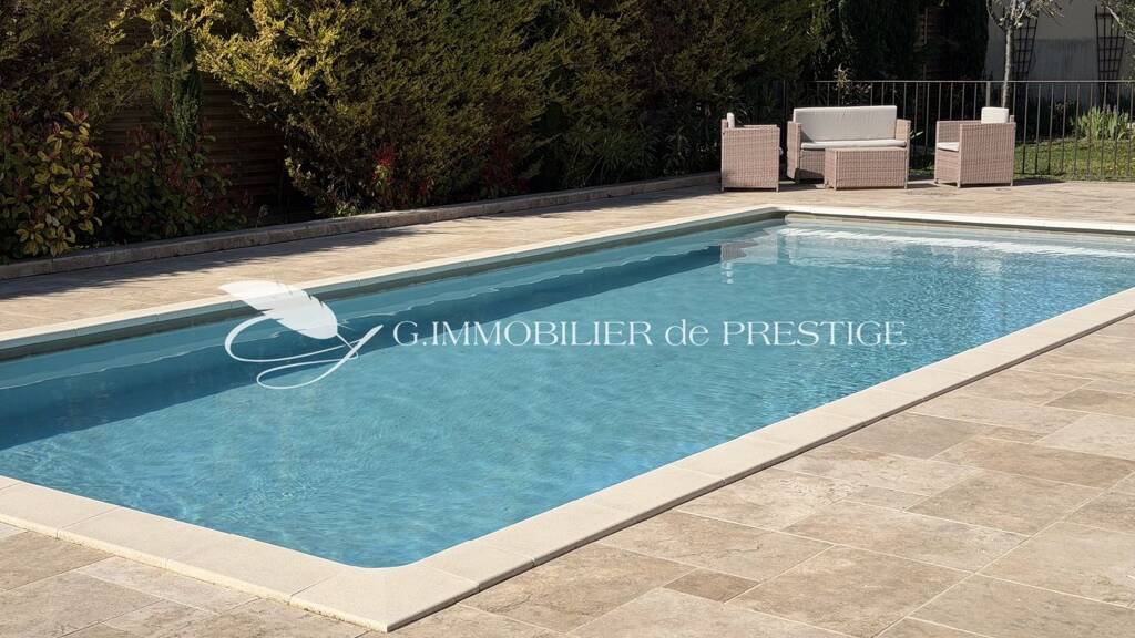Im Herzen eines hübschen, blumengeschmückten Gartens mit Olivenbäumen bietet diese schöne Villa von 200 m² eine ruhige und friedliche Lebensatmosphäre unweit des Dorfzentrums. Oberhalb des durchbrochenen Tores zeichnet sich der Mont Ventoux ab. Ihre Aussicht begleitet uns auf einer schönen Terrasse, die von Osten nach Westen ausgerichtet ist und es ermöglicht, die Frühstücke im Sonnenaufgang und die Sommerabende in der Abendsonne zu genießen. Eine schöne, überdachte Veranda, eine Massivholztür - und wir befinden uns im Zentrum des Anwesens in einem geselligen und eleganten Lebensraum mit vielen Öffnungen. Die Edelholz-Küche ist üppig und warm, mit Holzbalken und Granitplatten bietet sie viel Platz zum Kochen und für ein großes Festmahl. Sie ist zum doppelten Wohnzimmer von Ost nach Süden offen. Eine Steinwand grenzt die Bereiche ab und integriert einen Kamin, der Komfort und Wohlbefinden bringt. Eine Krillon-Steinstreppe führt ins Obergeschoss, wo drei Schlafzimmer ein Badezimmer teilen. Separate Toiletten. Ein unabhängiger ebenerdiger Bereich besteht aus einem Schlafzimmer mit Dusche und öffnet sich zu einer intim im Schatten durch eine Rebe beschatteten Terrasse gegenüber dem Pool. Ideal zum Empfangen, er kann auch zu einer sehr schönen Haupt-Suite mit Ankleidezimmer und Bad werden, um barrierefrei zu leben. Der Pool ist vollständig sicher und von einer schönen Travertin-Plage umgeben. Eine doppelte geflieste Garage mit viel Lagerfläche in der Mezzanine. Eine äußerst gepflegte Residenz, die sowohl Haupt- als auch Zweitwohnsitz sein kann und keine Arbeiten erfordert. "Ich entdeckte diese Architektenvilla an einem sonnigen Sonntag und als ich die noblen Eingangstüren öffnete, war ich sofort verführt von der Harmonie der Räume und Öffnungen in einer echten Harmonisierung der Raumaufteilung. Von dort führt eine der vier Holz-Schiebtüren zum Garten und zum Pool, und man kann sich dort niederlassen, um den Vögeln zuzuhören, vor der postcard-ähnlichen Kulisse des Ventoux." Die Lokalisierung ist exakt. Von unserer Agentur verfasst, nicht von Künstlicher Intelligenz.