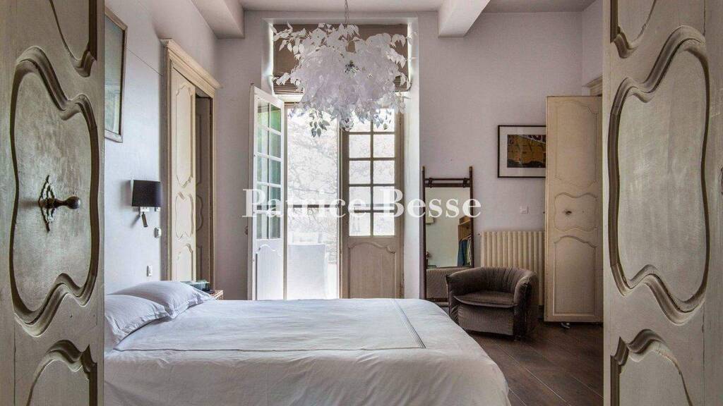As for the northern side, a small carriage entrance communicates with the interior courtyard, whereas the dwelling's stone front steps, to the east, provide access, via a large entranceway, to this level's living areas. In addition, tall glass double doors topped with glazed fanlights open on to the immense patio, while, on the garden level, two large doors communicate with the cellar.