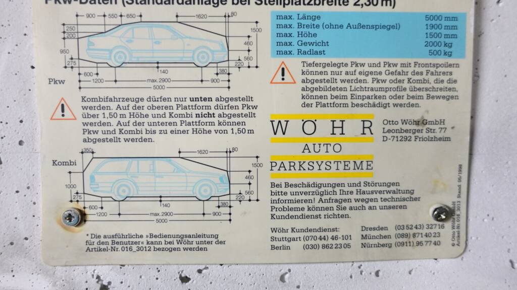 Es sind Plätze im oberen und unteren Stapelbereich verfügbar. Die unteren Stapelparker sind gemäß Bedienungsvorschrift ebenfalls für Kombifahrzeuge geeignet.