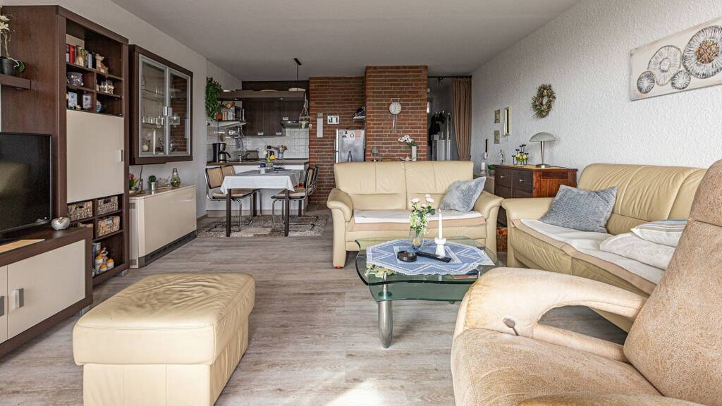 Zum Verkauf wird diese moderne 2-Zimmer-Eigentumswohnung angeboten, die sich im 4. Obergeschoss des Appartementkomplexes "Seestern" in Butjadingen befindet. Mit einem herausragenden Blick in erster Reihe über den Deich auf die dahinter liegende Nordsee, bietet die nach Süden hin ausgerichtete Wohnung eine Aussicht, die im Nordseebad Tossens und in Butjadingen nur den Eigentümern im Seestern vorbehalten ist. Auf einer Wohnfläche von ca. 52 m² bietet das angebotene Objekt ausreichend Platz für ein Paar oder eine kleine Familie mit Kindern. Ausgehend vom Eingangsbereich, gelangt man in das Schlafzimmer mit Doppelbett. Hier wachen Sie morgens mit dem atemberaubenden Blick auf die Nordsee auf oder blickt in den Abendstunden auf die untergehende Sonne. Das angrenzende Duschbad wurde von der jetzigen Eigentümernin modernisiert. Weiter ist der Wohn-Essbereich mit seinem Zugang zum Balkon vorzufinden. Von Hier aus hat man eine fantastische Aussicht, mit der sich unvergessliche Sonnenuntergänge über den weiten Horizont beobachten lassen.