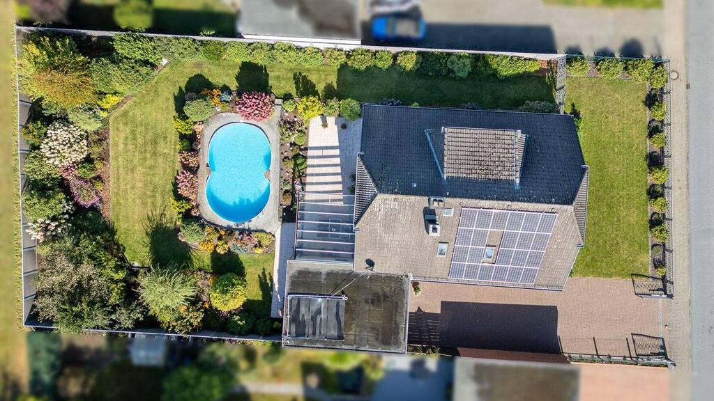 Wie bereits erwähnt, erwartet Sie im Garten eine Wohlfühloase der Extraklasse (gern zeigen wir Ihnen Gartenaufnahmen aus dem Sommer). Der Pool und die überdachte Terrasse laden zum Entspannen und Erholen ein. Als weitere Extras gibt es eine PV-Anlage, ein motorisiertes Hoftor und eine hochwertige Zaunanlage.