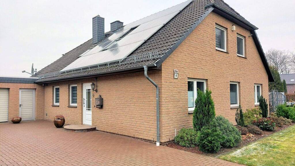 - Massivbauweise mit Klinker-Fassade - Betonsteindach - Haustür in Kunststoff (Sicherheitstür 08/2017) - 2-fach verglaste Kunststofffenster - Fliegengitter vor allen Fenstern - neue Fenster in der Garage mit Sicherheitsglas (10/2015) - elektrische Markise - manuelle Rollläden im kompletten EG und im OG zur Straßenseite - Innentüren weiß (07/2024) - Geschosstreppe aus Holztreppe - Gäste-WC mit Fenster und Waschmaschinenanschluss - Vollbad mit Fenster im EG - Duschbad mit Fenster im OG - Fliesen: Flur EG, Küche, Bäder - Teppich: OG, Schlafzimmer EG und Ankleide EG - Vinyl: Wohnzimmer EG - Gas-Zentralheizung, Fabrikat Viessmann (Baujahr 2023) - geschlossener Kamin ist möglich (1 Schornstein verschlossen) - zentrale Warmwassererzeugung mit Kupferleitungen - 200 L Warmwasser-Speicher - FI Schalter vorhanden - Glasfaseranschluss bis ins Haus vorhanden -Kabel TV - Satellitenanlage (Aktiv) - Einbauküche mit Abluft im EG - kleine Teeküche im OG - Pool, 1,50 Meter tief - Abstellraum - 1 Garagenstellplatz mit elektrischem Tor (Motor erneuert 03/2018) - elektrische Hofeinfahrtstore (Motoren erneuert 03/2015) - Hofpflasterung 06/2015 erneuert - Terrasse überdacht mit Sicherheitsglas (2011) - Grundwasseranschluss vorhanden - PV Anlage (Hersteller Powador, 2014, 6 KW ohne Speicher, für Eigenbedarf, Vertrag bis 2034) - 90 m hochwertige Zaunanlage