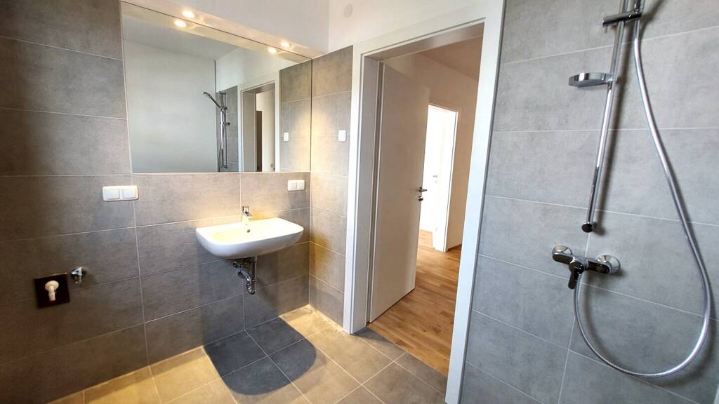 Vorraum, separates WC und Schrankraum geben zusätzlich Platz, um die wesentlichen Bereiche des Lebens strukturiert zu halten. In allen Räumen wird hochwertiger Parkettboden oder moderne Bodenfließen verlegt.