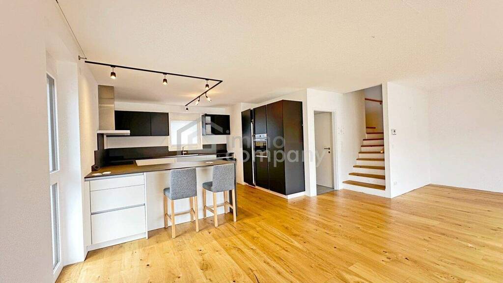 Vorraum, WC, großzügige Wohnküche mit offenem Wohnbereich, direkter Ausgang auf die Terrasse mit Eigengarten.
