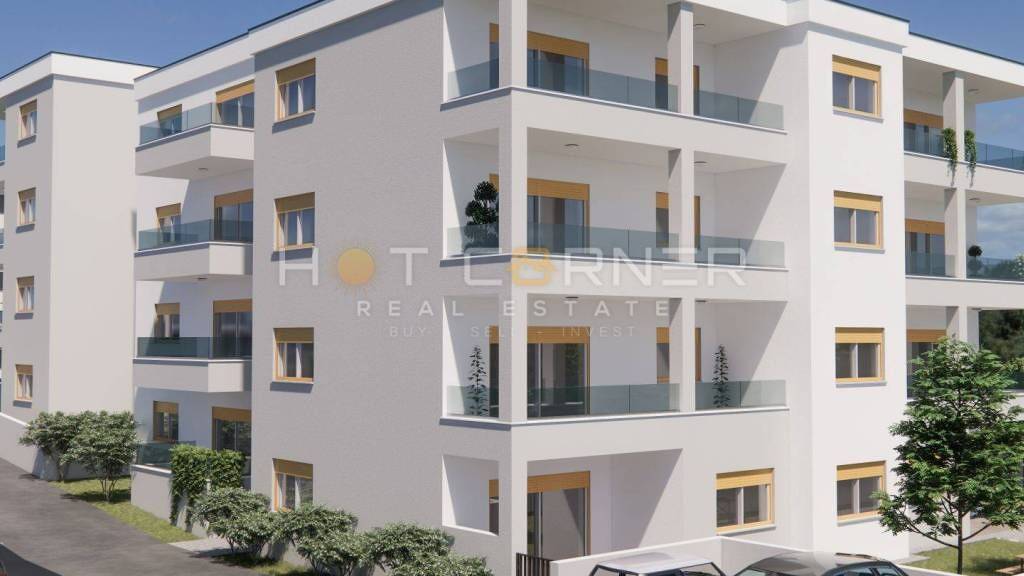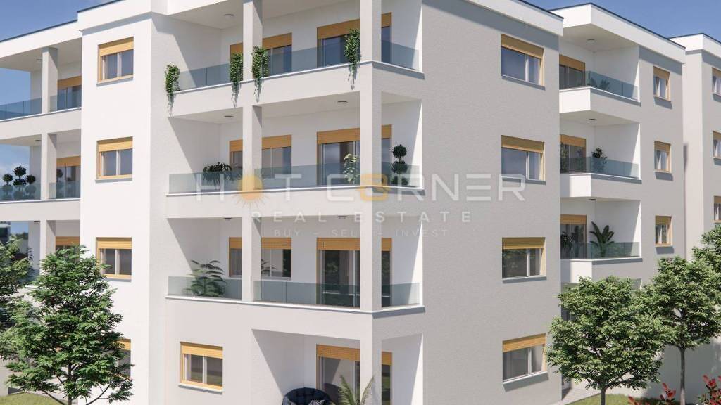 Im Angebot steht eine geräumige und modern gestaltete Wohnung in einer qualitativ hochwertigen Neubauimmobilie in ausgezeichneter Lage in Pula, in der Nähe des Stadtzentrums und aller notwendigen Annehmlichkeiten für ein angenehmes tägliches Leben.