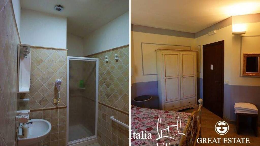 Das Hauptgebäude, das für den Agritourismus genutzt wird, hat eine Bruttowohnfläche von ca. 590 qm auf zwei Ebenen und besteht aus 8 sorgfältig renovierten und eingerichteten Wohnungen, die jeweils aus einer Wohnküche, einem Schlafzimmer und einem Bad bestehen, sowie aus weiteren 5 Zimmern mit Bad. Das Bauernhaus verfügt über einen Restaurantraum mit Bar, Küche und allem Zubehör, eine Metzgerei mit Gewürzkeller, Kühlraum und Empfangsraum mit einer Gesamtfläche von ca. 282 qm. Zum Anwesen gehört auch eine Wohnung von ca. 331 qm auf zwei Ebenen (Erdgeschoss und erster Stock), von denen nur das Erdgeschoss renoviert wurde, während der erste Stock renovierungsbedürftig ist. Das Grundstück wird durch Geräteschuppen, Ställe und geschlossene Schuppen vervollständigt. Das Grundstück ist von ca. 166.626 qm Land umgeben, wovon ca. 150.000 qm landwirtschaftliche Nutzfläche (Wald und Ackerland) sind, während die restlichen 16.626 qm ein Park/Garten sind. Innerhalb des Parks/Gartens gibt es einen schönen 18 x 8 m großen Infinity-Pool und einen kleinen See zur Bewässerung und für Angelaktivitäten.
