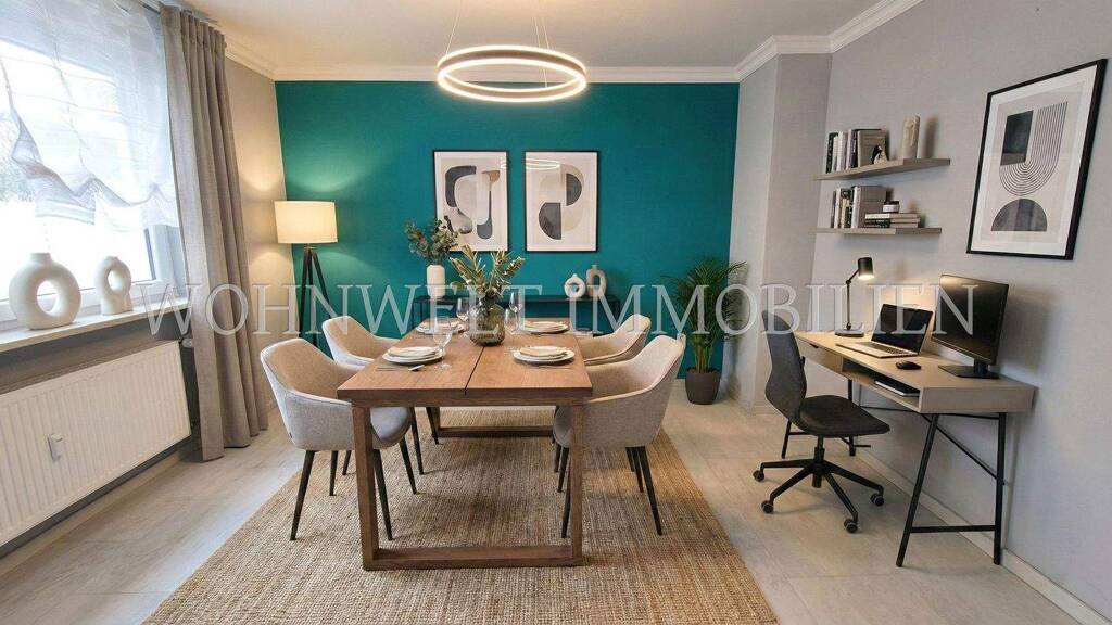 Diese gepflegte Erdgeschosswohnung bietet eine ideale Möglichkeit für Familien und Paare, die Wert auf gemütliches Wohnen in einem ruhigem Umfeld legen. Die Wohnung befindet sich in einem 4-Parteien-Haus und überzeugt mit seiner großzügigen Wohnfläche von ca. 101,40m² und der durchdachten Raumaufteilung. Insgesamt stehen Ihnen vier Zimmer zur Verfügung, darunter ein geräumiges Schlafzimmer, ein Kinderzimmer die Ihnen und Ihrer Familie ausreichend Platz bieten. Ein modern gestaltetes Tageslichtbad mit Wanne und Dusche ergänzt den Wohnkomfort dieser attraktiven Immobilie. Die Küche, ausgestattet mit einer praktischen Einbauküche, lädt zum gemeinsamen Kochen und Genießen ein. Das schöne Esszimmer bietet Ihnen schöne Abende mit der Familie. Ein besonderes Highlight ist der direkte Zugang über den großzügigen Wintergarten (ca. 26,30 m²) zum Gemeinschaftsgarten, hier können Sie herrliche Stunden im vorhandenen Freisitz verbringen. Der Keller bietet ausreichend Stauraum. Die Doppelgarage (zzgl. 12.500 € pro Stellplatz) rundet dieses Angebot ab.
