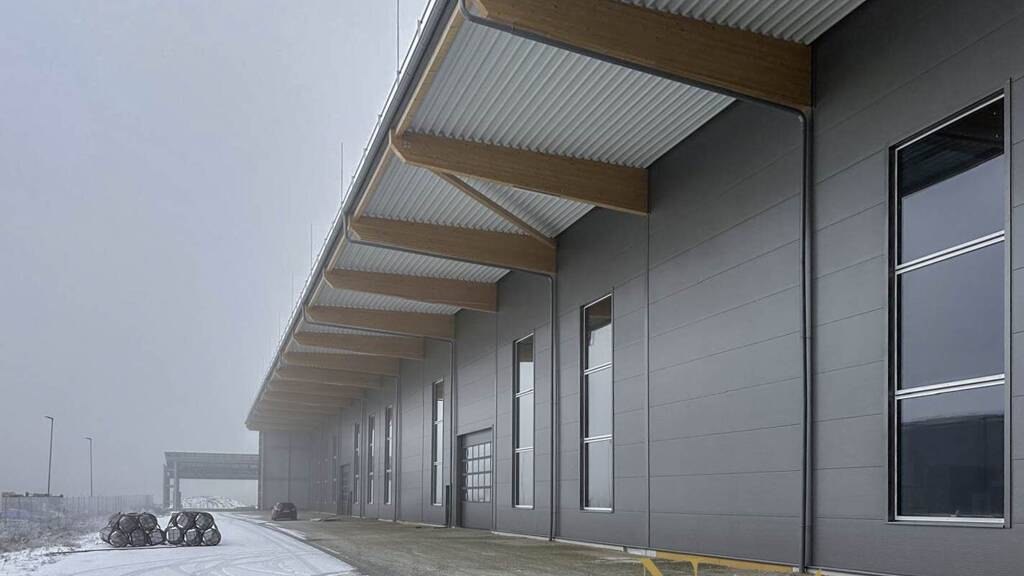 Obwohl die Halle selbst nicht beheizt ist, besteht die Möglichkeit, Deckenstrahler zu installieren. Die ca. 12cm dicken Fassadenpaneele sorgen für eine gute Wärmedämmung. Fernwärmeanschlüsse sind bereits vorgesehen, und eine Biomasseheizung ist ebenfalls vor Ort. Zudem besteht die Option, eine weitere Photovoltaikanlage auf dem Dach zu installieren.