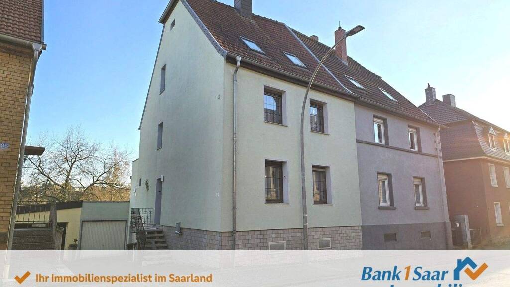 In guter und ruhiger Wohnlage von St. Ingbert befindet sich diese gepflegte 2,5-geschossige Doppelhaushälfte auf einem ca. 270 m² großen Grundstück. Das ursprünglich ca. 1955 in massiver Bauweise errichtete Wohnhaus wurde etwa 1976 erweitert und präsentiert sich heute in einem sehr ordentlichen und gepflegten Gesamtzustand.