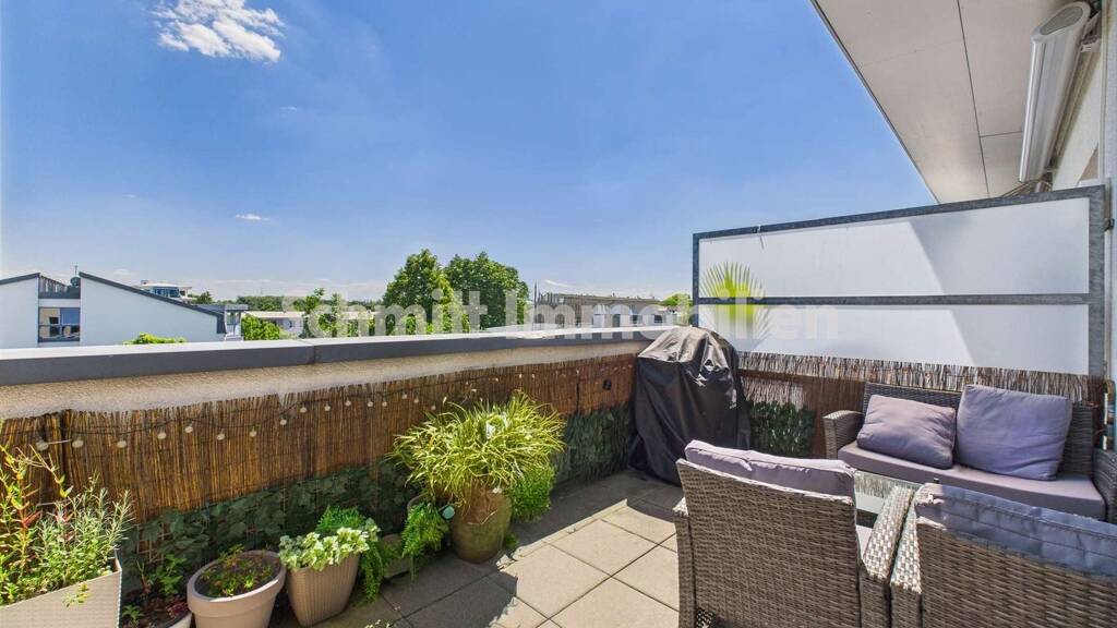 Die sonnige Dachterrasse in Südausrichtung mit rund 11 m² wird an warmen Tagen zum Lieblingsplatz - perfekt für Frühstück im Freien oder entspannte Abendstunden.