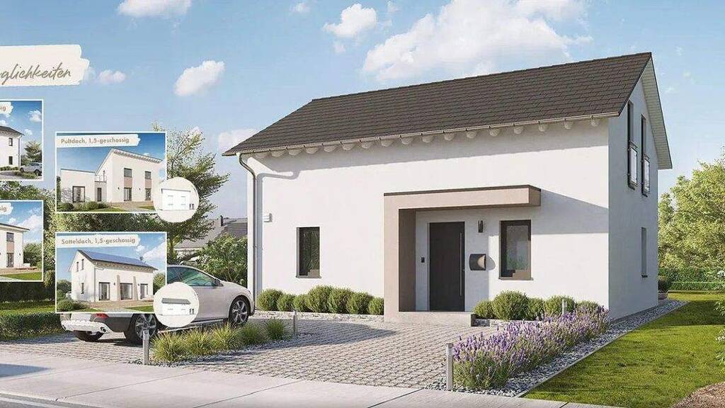 Mit einer vielfältigen Auswahl an Haustypen - vom Bungalow über klassische Einfamilienhäuser bis hin zu Stadtvillen, Doppelhäusern und Mehrgenerationenhäusern - bietet Allkauf passende Lösungen für jedes Grundstück und jede Lebenssituation. Flexible Grundrisse, moderne Architektur und energieeffiziente Bautechnik runden das Angebot ab. Stichworte Anzahl der Schlafzimmer: 3, Anzahl der Badezimmer: 1, 2 Etagen Sonstiges/Wohnen: Dachboden