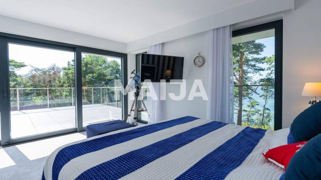 Der Standard der Verarbeitung - keine Kompromisse: Die Innenausstattung wurde für die anspruchsvollsten Gäste entworfen. Marmorböden, Aluminiumschreinerei im HS-System, Klinkerfassade und Granitoberflächen garantieren Haltbarkeit und zeitlosen Stil. Das Wohnzimmer mit Kamin und Meerblick ist das Herzstück des Hauses, und die voll ausgestattete Küche mit erstklassigen Geräten rundet das Gefühl von Luxus ab.