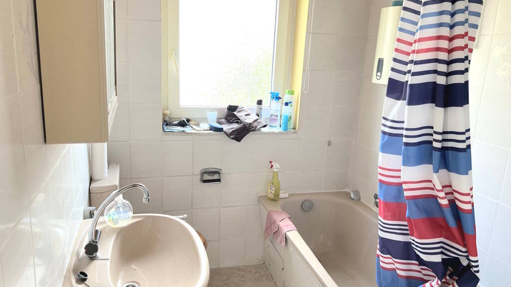 Das Obergeschoss bietet zwei Zimmer mit jeweils ca. 10 m² sowie ein schlichtes, in Weiß gefliestes Tageslichtbad mit Badewanne.