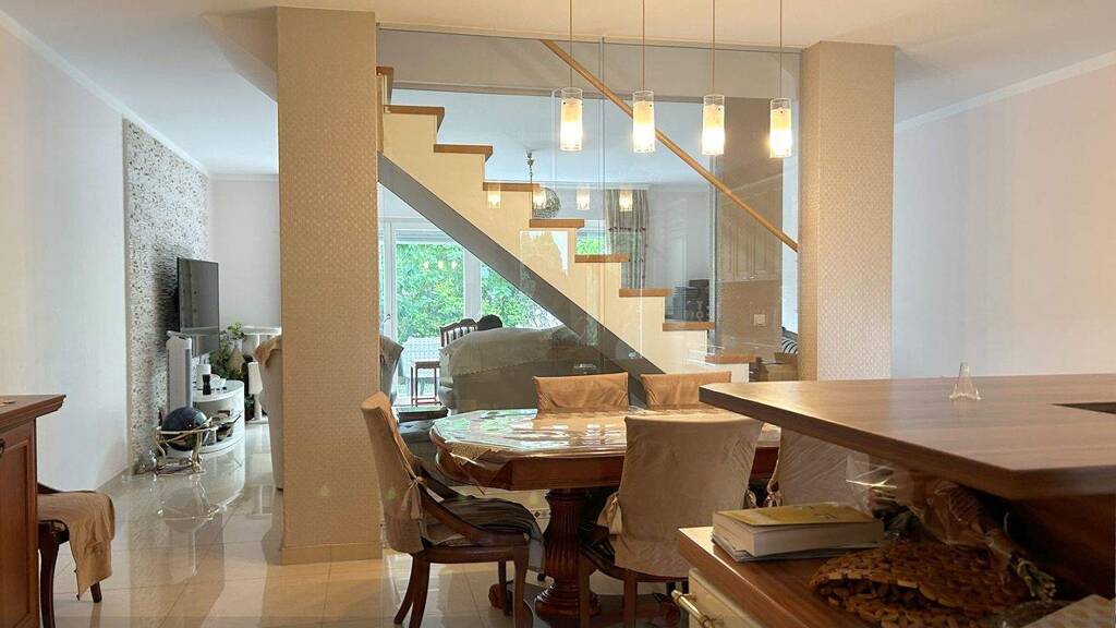Das Haus wurde ca. 2009 errichtet, das DG ca. 2013 ausgebaut. Es besteht im EG aus einem beidseitig belichteten, großzügigen Wohn-/Essbereich mit offener DAN-Küche (Miele, Neff, etc.) und Zugang zum Garten bzw. Terrasse und Loggia, einer Gästetoilette sowie einem Vorraum mit Einbaugarderobe. Über eine Treppe gelangt man ins OG. Hier befinden sich 3 Zimmer, ein Bad mit Wanne (neuere Einbaumöbel), ein WC und Maßschränke am Gang. Im DG stehen 2 weitere Räume mit begehbarer Abstellkammer, ein Duschbad und ein WC zur Verfügung.