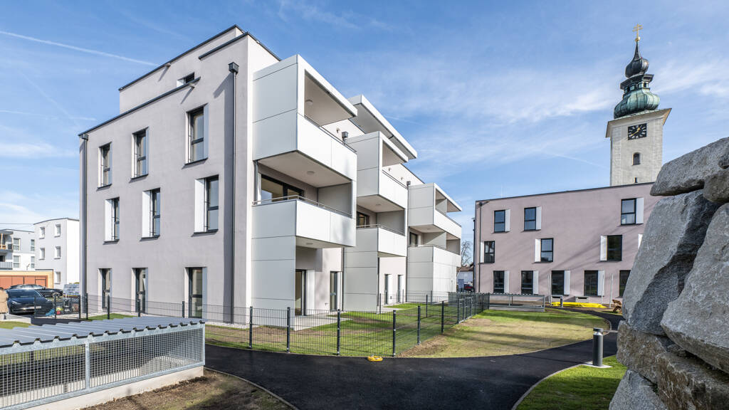 Die OÖ Wohnbau hat direkt am Brucknerplatz von Hörsching neben der Kirche eine Wohn- und Geschäftsanlage errichtet. Die Marktgemeinde Hörsching ist verkehrsgünstig unweit von der Landeshauptstadt Linz gelegen. Sie deckt mit ihrer Infrastruktur den gesamten Bedarf des täglichen Lebens ab: Lebensmittelmärkte wie EUROSPAR, BILLA sowie Kindergarten, Krabbelstube, Volksschule, NMS und vieles mehr. Die Gemeinde Hörsching gilt als attraktive Wohn- und Arbeitsgemeinde für die im Großraum Linz tätigen Menschen, in der namhafte Betriebe zB DHL Group, Wacker Neuson oder das Bundesheer angesiedelt sind. Der bekannte und nur wenige Autominuten entfernte Flughafen Hörsching verbindet mit internationalen Destinationen und in der ebenfalls nahe gelegenen Plus City können beinahe alle Einkaufswünsche erfüllt werden. Die Anlage besteht aus drei Häusern mit insgesamt 28 Wohnungen und 5 Geschäftseinheiten, die durch eine gemeinsame Tiefgarage verbunden sind. Haus 1 und 3 werden dreigeschoßig und Haus 2 viergeschoßig ausgeführt. Das Grundstück ist nach Süden ausgerichtet. Zwischen Haus 1 und 2 wird ein Platz errichtet, der zum Verweilen animiert. Dieser Platz ist die logische Fortsetzung des Ortsplatzes, der von der Marktgemeinde Hörsching vollkommen neu gestaltet wurde. Die Wohnungen haben eine Größe zwischen ca. 42 m² und 96 m² und wurden nach den Kriterien des anpassbaren Wohnbaues geplant. Jeder Wohneinheit ist eine Freifläche in Form von Loggia, Balkon Terrasse oder Dachterrasse zugeordnet. Die Erdgeschoßwohnungen von Haus 2 und 3 haben darüber hinaus einen zugeordneten Eigengarten. Die Beheizung der Anlage erfolgt mit einer zentralen Pelletsanlage, deren Heizzentrale in Haus 3 gelegen ist. Die Wärmeverteilleitungen für Haus 1 und 2 sind in der Tiefgarage situiert.