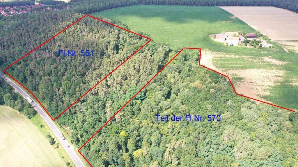 Fl.Nr. 570 - Waldfläche mit 141.942 m² Fl.Nr. 570/4 - Weg mit 2.645 m² Fl.Nr. 570/5 - Weg mit 1.644 m² Fl.Nr. 551 - Waldfläche mit 40.627 m² Fl.Nr. 550/2 - Weg mit 1.088 m² Gesamt: 187.946 m²