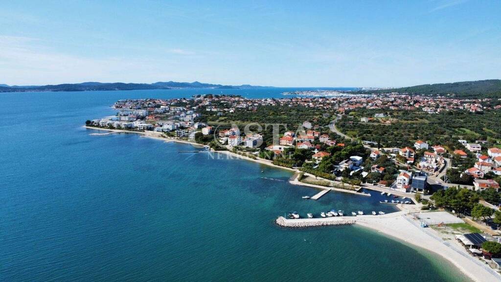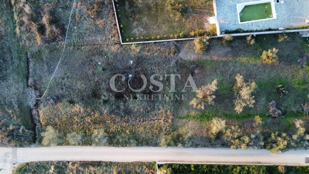 Baugrundstück in Toplage, zweite Reihe zum Meer in Sukosan, zu verkaufen. Das 888 m² große Grundstück liegt teils im unbebauten, teils im erschlossenen Teil des Baugebiets. Es hat eine regelmäßige rechteckige Form (34 m lang und ca. 24 m breit) und ist im Süden und Osten über eine 3 m breite Asphaltstraße erreichbar. Die gesamte notwendige Infrastruktur befindet sich in unmittelbarer Nähe.
