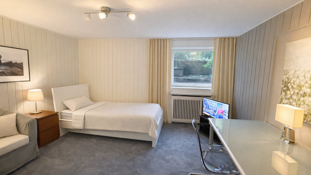 The room is ideal for professionals, for example working at Airbus, or for anyone seeking quiet living with good access to the Elbe river and Hamburg’s western districts.