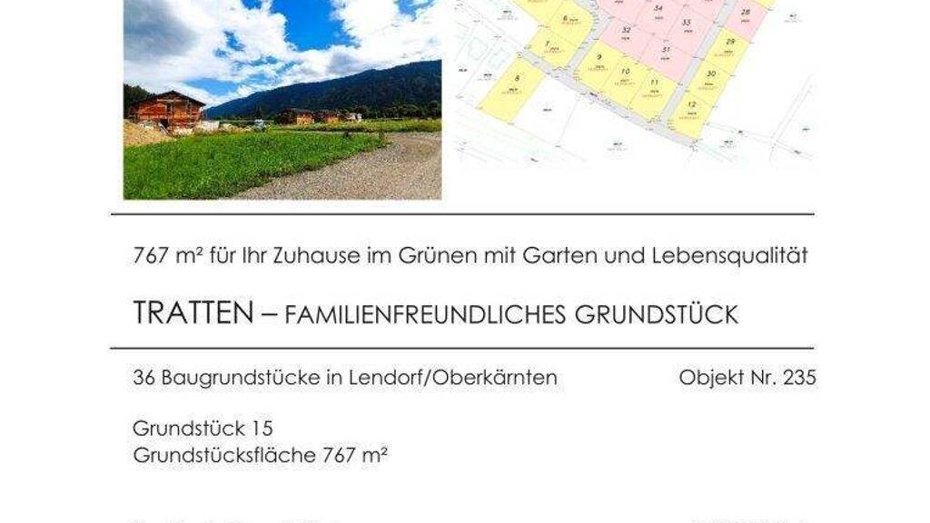Mitten im Grünen und doch zentral: In der sonnigen Trattensiedlung in der Gemeinde Lendorf entstehen auf rund 2,5 ha Bauland insgesamt 36 attraktive Baugrundstücke, ideal für junge Familien, Naturliebhaber und alle, die ihr Eigenheim mit Weitblick verwirklichen möchten.
