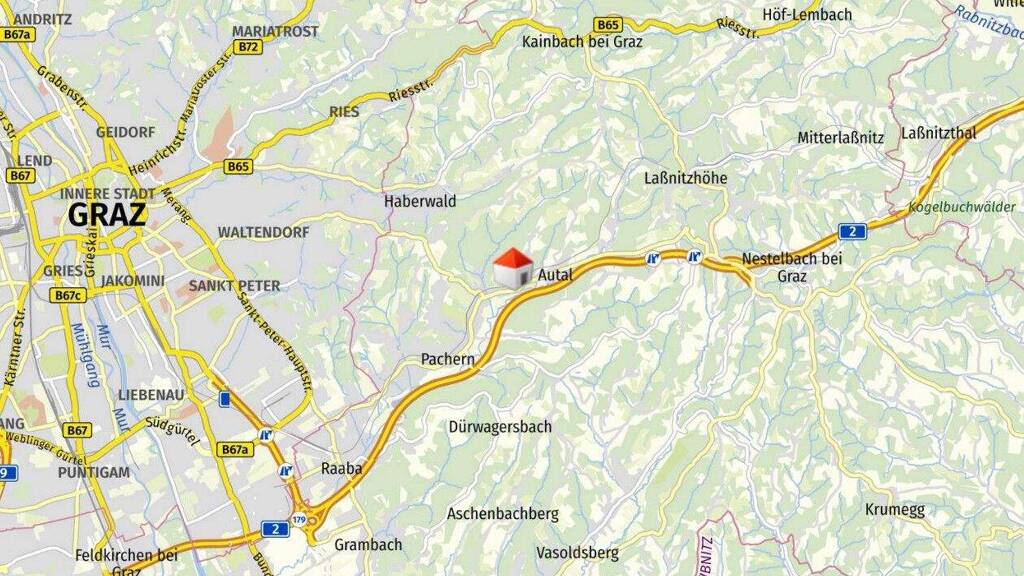 Autobahn: Die Auffahrt zur A2 (Südautobahn), Knoten Laßnitzhöhe, ist nur wenige Fahrminuten entfernt. Von dort sind Sie in ca. 10-15 Minuten in Graz oder in etwa 90 Minuten in Wien.