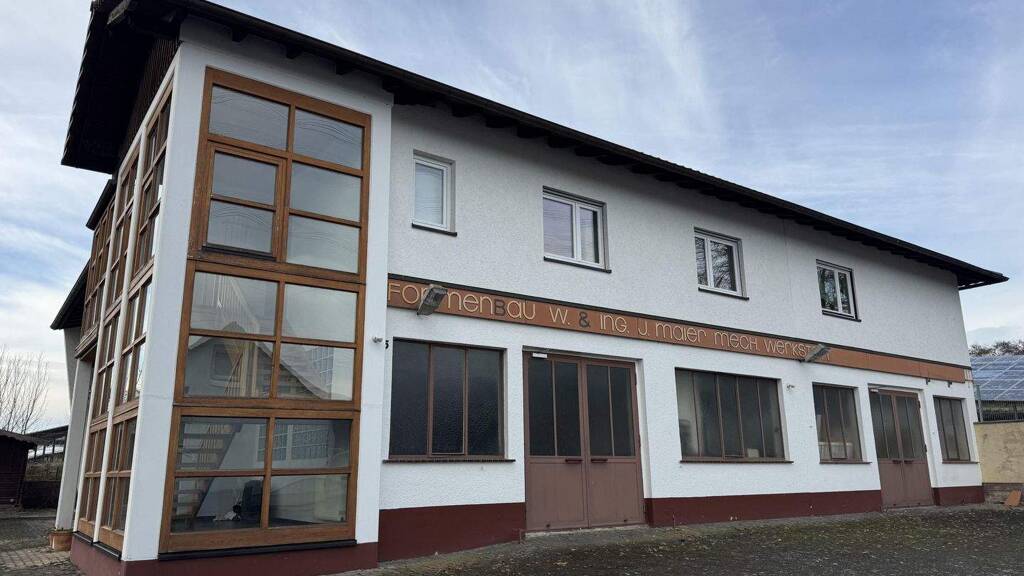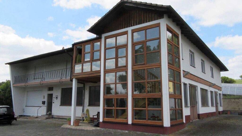 Werkstatt/Gewerbefläche: Im Erdgeschoss befindet sich einen 220 qm große Gewerbefläche/Werkstatt. Dazu kommen zwei Büros mit Aufenthaltsraum, Toilette und Waschbecken. In den letztes Jahrzehnten wurde die Fläche als Produktionshalle für Maschinenbau/Formenbau genutzt. Aktuell steht sie leer. Natürlich kann die Fläche auch für andere Gewerbezwecke oder zum Abstellen von Autos, Maschinen o.ä. genutzt werden.
