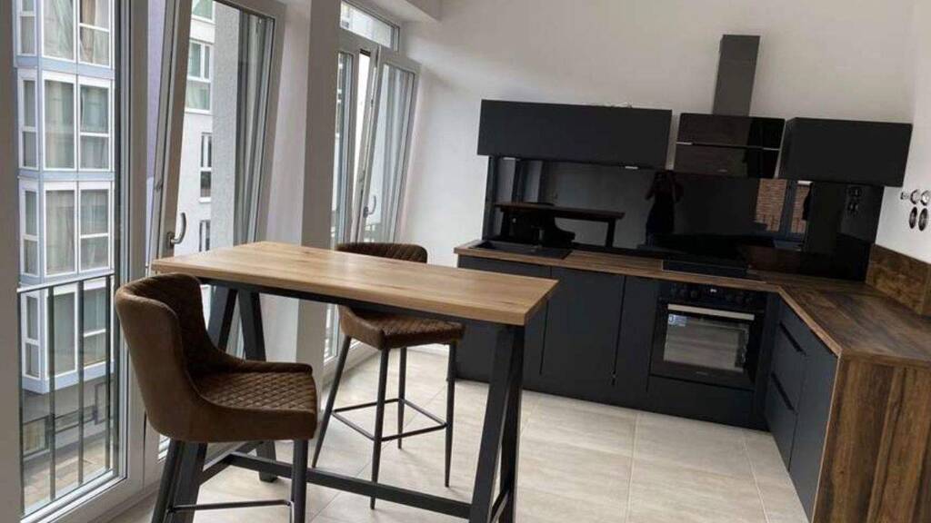 - KĂĽche (GeschirrspĂĽler, Herd, Backofen, KĂĽhlschrank, Stauraum)