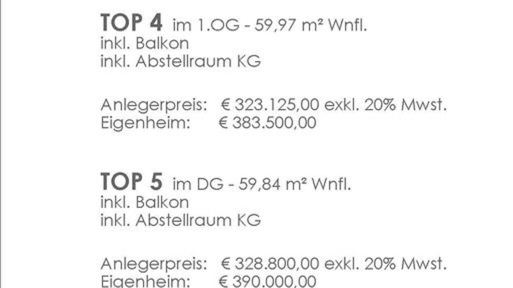 59,84 m² Dachgeschoß-Wohnung Top 6 - im Neubauprojekt - € 328.800,-- netto für Kapitalanleger