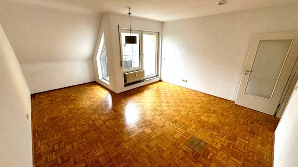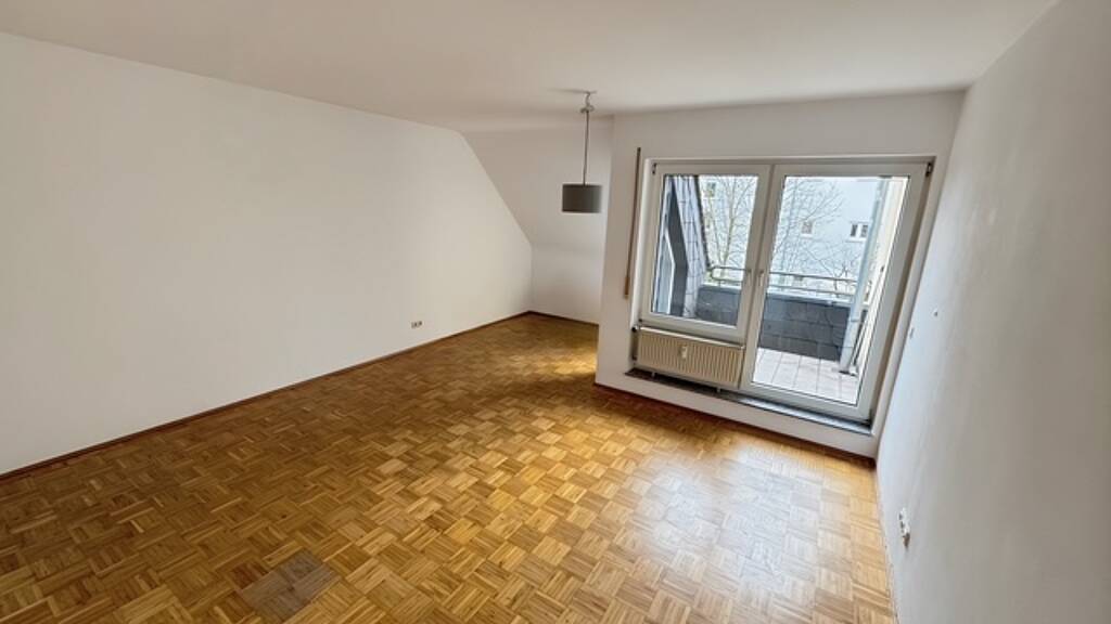- ca. 60 m² Wohnfläche - Dachgeschoss mit Aufzug im Haus - renovierter Zustand - großzügiges Wohnzimmer mit Zugang zum Balkon - separates Schlafzimmer - Küche mit guter Stellfläche - Badezimmer mit Wanne und Duschmöglichkeit - geschützter Balkon mit schöner Privatsphäre - eigener Kellerraum