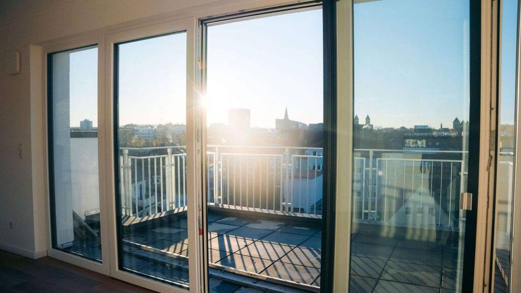 Das moderne Penthouse überzeugt durch seine durchdachte Raumaufteilung, helle Räume und mehrere großzügige Außenflächen mit einem beeindruckenden Blick auf die Skyline von Osnabrück. Insgesamt stehen zwei Balkone sowie eine großzügige Dachterrasse zur Verfügung, die zu jeder Tageszeit Sonne und Ausblick bieten. Beim Betreten der Wohnung gelangt man zunächst in den unteren Wohnbereich. Hier befindet sich die moderne Küche mit direktem Zugang zu einem Balkon in Westausrichtung - ideal für entspannte Abendstunden. Auf dieser Ebene liegen zudem zwei gut geschnittene Schlafzimmer, ein Gästezimmer, ein praktischer Abstellraum mit Waschmaschinenanschluss sowie ein stilvolles Badezimmer mit großer, bodengleicher Dusche. Über eine offene Treppe erreicht man die obere Etage, die durch ein lichtdurchflutetes Wohnzimmer besticht. Von hier aus hat man Zugang zu einem weiteren Balkon in Ostausrichtung sowie zur großzügigen Dachterrasse mit Westausrichtung. Diese bietet einen einmaligen Blick über die Dächer der Stadt und auf die Osnabrücker Skyline - ein perfekter Ort zum Entspannen, Genießen und Verweilen.