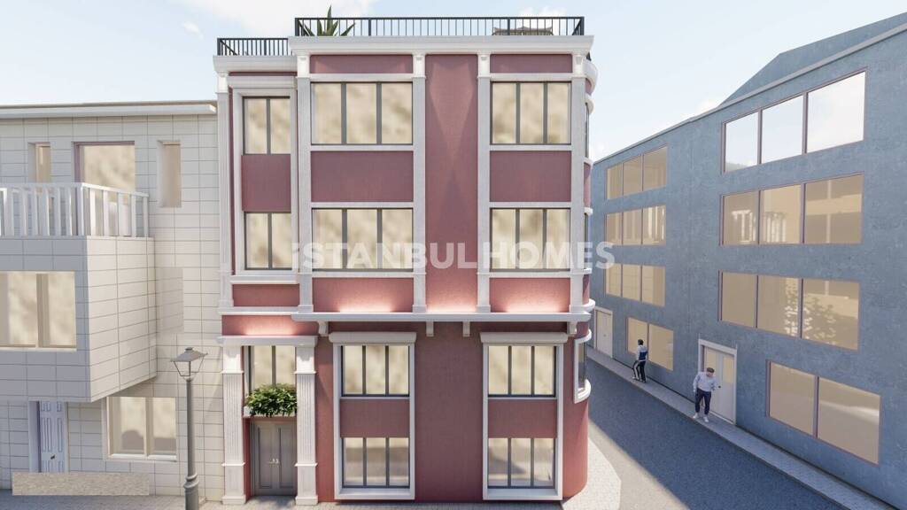 Das 4-stöckige Gebäude mit einer Terrasse und Ecklage hat eine Grundstücksfläche von 61 qm. Auf jeder Etage des Gebäudes befindet sich eine Wohnung, insgesamt gibt es 4 Wohnungen mit 2 Schlafzimmern und 60 m². Die Wohnungen verfügen über ein offenes Küchenkonzept. Das Gebäude profitiert durch seine großen Fenster und die Ecklage von der Sonneneinstrahlung während des Tages. Das Gebäude wird nach Abschluss der Innen- und Außenrenovierung voll möbliert übergeben. Daher bietet das kostenfreie Gebäude eine hohe Verdienstmöglichkeit mit Airbnb.